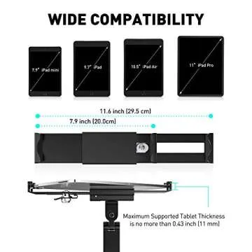 AboveTEK Tablet Wall Mount - 360° Rotation Tablet Holder Stand with Extension Arm, Anti-Theft Kitchen Mount Fits 7"-11" Tablets Including iPad Pro/Air/Mini, Galaxy Tab - Security Lock & Key - (Black)