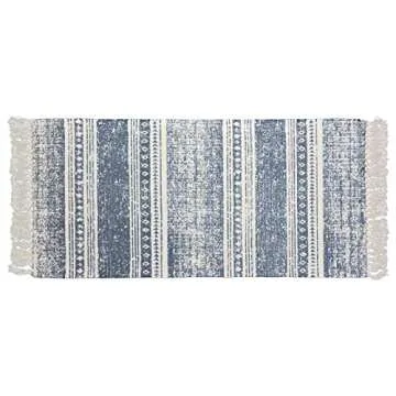 ABREEZE Cotton Rug Runner 2'x4.3', Boho Rug for Bedroom, Hand Woven Cotton Fringe Tassel Area Rug for Kitchen Laundry Bathroom Doorway
