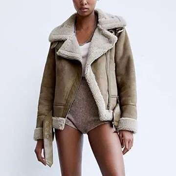 Abrigos De Mujer Invierno En Oferta,Leather Jacket Women,Brown Suede Jacket Faux Fur Teddy Biker Jacket Oversized Shearling Sherpa Lined Coats Chaqueta De Cuero Para Mujer Bomber Jacket(Coffee,XL)