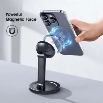 ABSKRYO Magnetic Phone Stand for Desk Mag-Safe Phone Holder Adjustable Angle Phone Stand with 360° Rotation Folding Cell Phone Stand Compatible with iPhone 16 15 14 13 12 Series