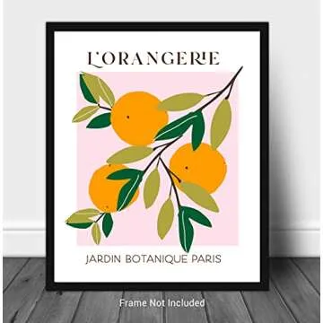 Abstract Fruit No.10 Oranges Exhibition Wall Art Print. 11x14 UNFRAMED Modern Kitchen Wall Decor. Shades of Orange, Green, Pink on White.