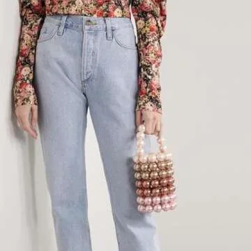 Abvokury YUSHINY Women Beaded Pearl Evening Bucket Handmade Bags with DustBag for Wedding Party