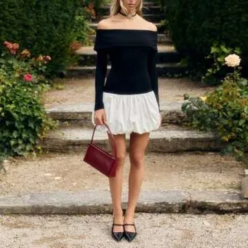 ABYOVRT Women Bubble Mini Dress Long Sleeve Off Shoulder Puffy Short Dress Fall Cocktail Party Formal Dresses (Black White,S)