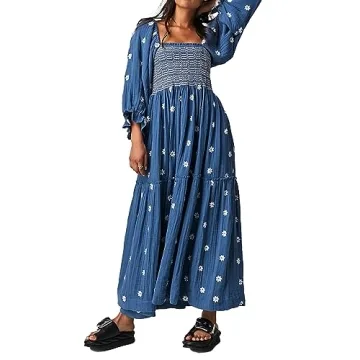 Show moreStep into a world of elegance and style with the stunning ABYOVRT Women Floral Embroidered Maxi Dress. Crafted from premium seersucker fabric, this beautiful long dress not only exudes grace but also provides breathable and skin-friendly comfort, making it your go-to choice for various occasions. With exquisite 3D embroidered flowers adorning the fabric, this maxi dress is designed to empower women of all shapes through its flexible stretchy smocked bust. The tiered A-line skirt flows luxuriously from the waist, adding to the overall charm of this must-have piece.