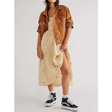 Show moreIntroducing the ABYOVRT Women Floral Embroidered Maxi Dress, where elegance meets comfort in a stunning combination. Tailored from premium seersucker fabric, this dress promises a soft, breathable, and skin-friendly experience, making it the perfect choice for every occasion. The bohemian swing style features a stretchy smocked bust that accommodates varying body shapes, while the beautifully tiered A-line skirt flows effortlessly from the waist, enhancing your silhouette. Adorned with exquisite 3D embroidered flowers, this dress is not just attractive but also durable enough for long-lasting wear.