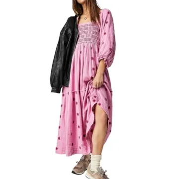 Show moreElevate your wardrobe with the enchanting ABYOVRT Women Floral Embroidered Maxi Dress. This stunning piece masterfully combines bohemian elegance with refined comfort, making it an essential attire for any fashionista. Crafted from high-quality seersucker fabric, it guarantees softness and breathability—ideal for those warm days or special occasions that stretch into the evening. The figure-flattering tiered A-line skirt drapes beautifully from the waist, ensuring that you feel both chic and comfortable no matter where your day takes you.
