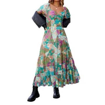 Show moreStep into a world of effortless style with the ABYOVRT Women Floral Maxi Dress. This stunning bohemian dress is expertly designed to offer both comfort and elegance, making it an essential addition to your wardrobe. Crafted from a soft double-layer fabric, the inner lining provides a smooth feel, while the airy chiffon outer layer showcases a flowing aesthetic perfect for twirling under the sun. The sweetheart neckline and unique twist detail at the bust add a touch of sophistication to your look. You'll love the smocked bodice that perfectly hugs your waist and the adorable puff sleeves that can be styled on or off the shoulders for a versatile appeal.