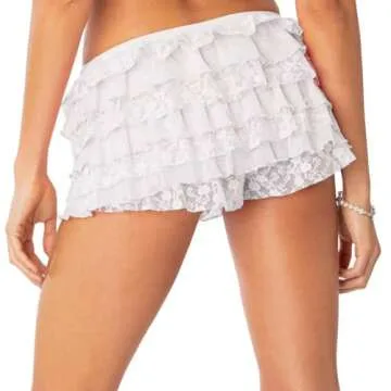 ABYOVRT Women Ruffle Shorts Lolita Bloomers Y2k Fairy Lace Layered Pumpkin Pants Sweet Cute Panties (A-White,M)