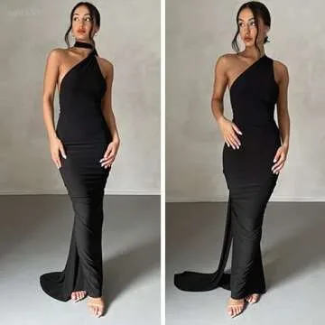 ABYOVRT Women Sexy Backless Bodycon Sleeveless Open Back Maxi Dress Going Out Elegant Party Cocktail Long Dress (B-Black, M)