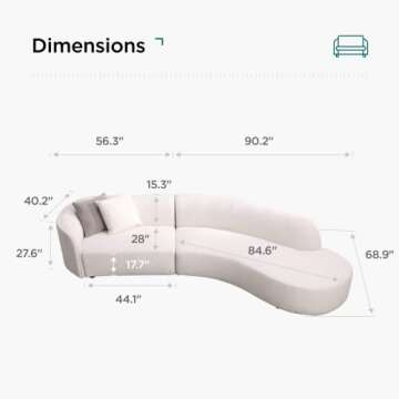Acanva Luxury Modern Style Living Room Upholstery Curved Sofa with Chaise 2-Piece Set, Right Hand Facing Sectional, Pearl Boucle Couch, White