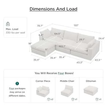 Acanva Modular L-Shaped Sectional Cloud Couch, Free Combination Minimalist Sofa with Shredded Latex Filled Cushion and Removable Slipcovers for Living Room, Home Office, 3 Seater + Ottoman