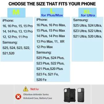 Show moreIntroducing the ACCKUO Leather Phone Holster, a perfect blend of durability, function, and style. Designed specifically for professionals on the go, this holster offers wide compatibility with all iPhone Pro Max and Plus models as well as Galaxy Plus and FE models. Its L-size makes it ideal for most protective cases while ensuring that your device is secure at all times. The sophisticated construction from premium synthetic leather not only shields your phone from damage but also enhances your overall professional image. With a strong metal belt clip and magnetic closure, you can access your phone easily and quickly, making this holster an invaluable accessory for anyone who leads an active lifestyle.