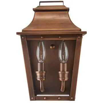 Acclaim Lighting 8423CP | Vintage Solid Copper Two Light Dimmable Wall Mounted Outdoor Wet Rated Lantern with Clear Glass | Hand Crafted Classic Colonial America Design (Copper Patina - Style Five)