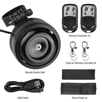 Accolmile Electric Bike Horn Anti-Theft Motion Sensor Alarm with Remote Controller, Waterproof Bike Bell Loudly Sound Ring Bell for Mountain Bike, Scooter,Road Bike USB Rechargeable Ebike Bell