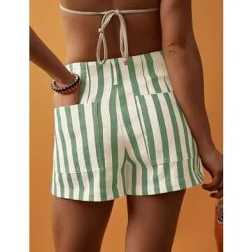 Show more Introducing the ACCPUR Women Striped Linen High Waisted Wide Leg Summer Casual Button Shorts, the ultimate blend of comfort and style this season. Crafted for the modern woman, these shorts are made from high-quality, lightweight, and stretchy twill fabric. With a chic design in a fresh grass green hue, they promise to keep you cool and comfortable during all your summer antics. The high-waisted silhouette paired with a wide leg design ensures not only a flattering fit but also versatility—perfect for transitioning from a casual day out to an active adventurer's lifestyle.