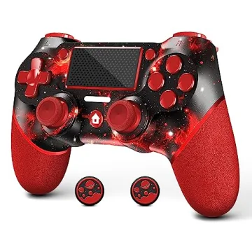 AceGamer Wireless Controller for PS4 - Red Universe Design with Turbo/Audio Jack/6-Axis Sensor and Double Vibration