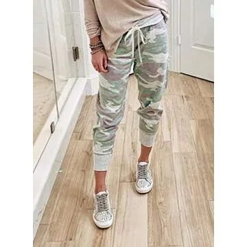 Acelitt Womens Fashion 2022 Casual Fall Drawstring Elastic Waist Camo Joggers with Pockets Sweatpants Workout Gym Comfy Athletic Pants Green Large