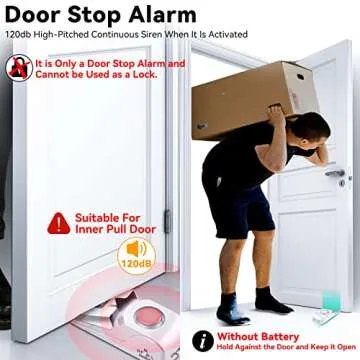 Show moreIntroducing the AceMining Door Stop Alarm with 120dB Siren, a revolutionary security device designed to give you peace of mind whether you're at home or traveling. This clever dual-function alarm serves not only as a powerful doorstop, holding your door securely in place, but also as a deterrent against unwanted intruders. When activated, the alarm emits a startling 120dB sound upon any pressure detected on the door, ensuring you're alerted to potential danger. With its compact and lightweight design, weighing just 4.7 ounces, this alarm is perfect for travel, fits conveniently into your luggage, and requires no installation—simply turn it on and place it behind any inward opening door.