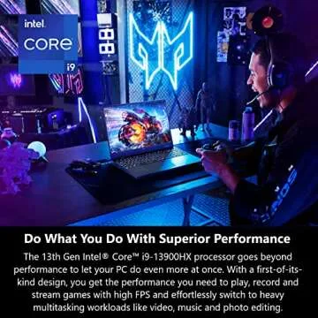 Show more Introducing the ultimate gaming powerhouse, the Predator Helios 16, designed meticulously for gamers and creators who demand top-notch performance. Armed with the revolutionary 13th Gen Intel Core i9-13900HX processor, this laptop goes beyond traditional benchmarks, allowing you to dive deep into gaming, streaming, and intensive multitasking with unprecedented efficiency. The vivid neon-hued shell encapsulates an extraordinary blend of speed and strength, making it a standout choice for professionals and casual gamers alike.