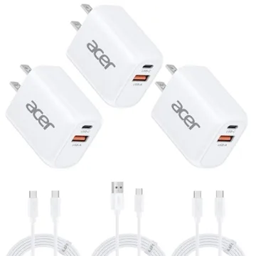 Acer Dual Port USB C Charger Block 20W with 3 Fast Charging Cables