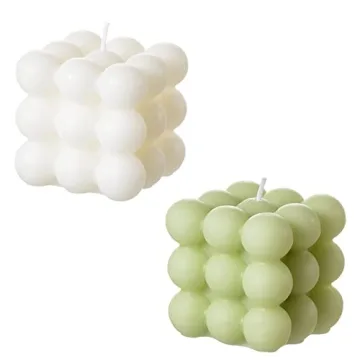 ACITHGL Bubble Candle - Cube Soy Wax Candles for Gift & Home Decoration, Set of 2 (White + Green)