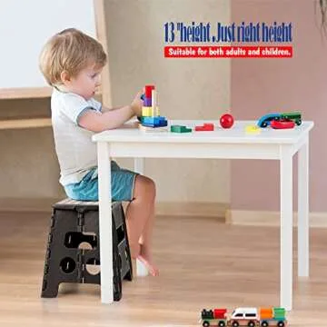 With a remarkable maximum load capacity of 300 pounds, this stool serves both children and adults alike. It’s versatile, compact, and perfect for those reaching for items positioned high or needing an additional seating option. However, it’s important to use this stool on a dry, flat surface and to keep it away from extreme temperatures.