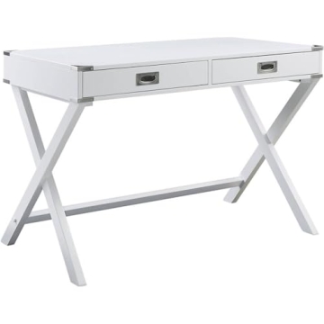 Show moreIntroducing the Acme Amenia Wooden Rectangular 2-Drawer Writing Desk with X-Shaped Base in White, a perfect blend of functionality and style for both home and office settings. This beautiful writing desk boasts a spacious rectangular table top, ideal for all your writing, studying, or work needs. With an elegant X-shaped base, it not only offers stability but also adds a contemporary touch to your space. Crafted from high-quality wood, this desk features two well-designed drawers that are perfect for keeping your essentials organized, making it an ideal addition to elevate your workspace.