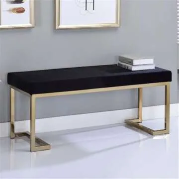 Acme Boice Rectangular Bench with Metal Tube in Black Fabric and Champagne
