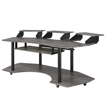 The desk features caster wheels for ease of movement, giving you versatility while maximizing your workspace. With a total of three stands and adjustable shelving options, you can easily customize your setup to fit large monitors or studio gear. Feedback from users highlights its impressive capacity to accommodate a range of equipment, ensuring that your monitor and audio gear are always close at hand.