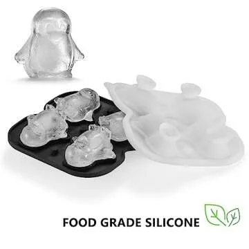 ACOOKEE Penguins Ice Cube Tray Fun Shapes, Odd Novelty Cute Penguin Gifts, 2.2" Large Silicone Whiskey Ice Mold for Cocktails,Bourbon,Brandy, w/Funne