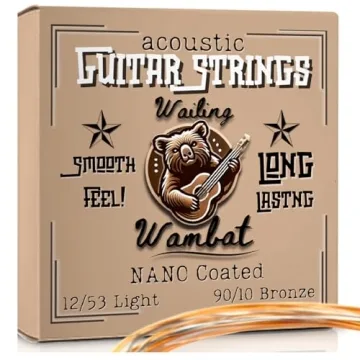 Acoustic Guitar Strings, 12-53 light, Phosphor bronze with Nano coating, Long lasting, vibrant sound, 90/10 Bronze, Smooth Feel, great for concert, or practice