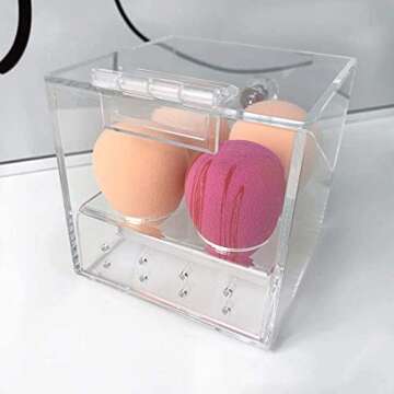Acrylic Beauty Blender Sponge Holder With Dustproof Lid Clear 4 Hole Solution Makeup Sponges Display Stand For Bathroom (Clear-4holes)