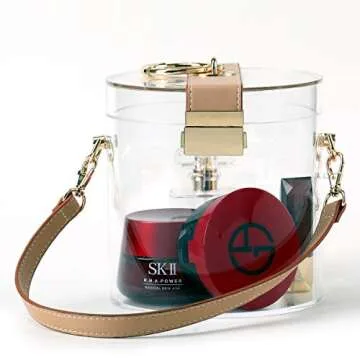 Acrylic Clear Travel Make-up Organizer Box Multifunction Dust Water Proof Cosmetics Storage Women, with Portable Shoulder Strap(bucket bag)