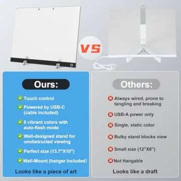 Acrylic Dry Erase Board with Light, 13.7"X10" 6-Color Neon Glow Memo LED Light-Up Message Note Board with Stand as Night Light for Room/Store/Office/Festival/Gift, Touch Control, 7 Markers