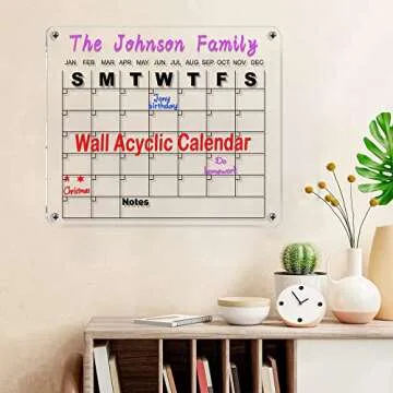 Show more Introducing an innovative organization tool that seamlessly blends functionality with unique design – the Clear Acrylic Calendar Board! This product is perfect for anyone looking to elevate their organization game. Crafted from high-quality acrylic, it provides a contemporary and clean look that complements any home or office decor. With a smooth writing surface, you can use vibrant chalk markers to jot down essential appointments, reminders, and plans, making your scheduling tasks both efficient and visually appealing.