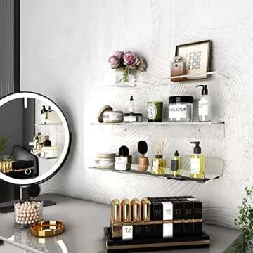 Show more Introducing the ultimate solution for maximizing space in your bathroom without the hassle of drilling holes! This innovative transparent non-marking glue acrylic bathroom rack not only elevates your décor but is also designed for convenience and flexibility. Whether you're living in a rental apartment or a dormitory, this bathroom rack is perfect for you. Enjoy a set of 4 shelves, comprising 2 large and 2 small, that can be arranged either side by side or layered creatively to suit your available space. You have the freedom to remove the rack at any time, making it a versatile choice for all your storage needs.