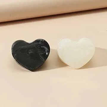 Acrylic Heart Shaped Chunky Rings Set Black White Heart Resin Pull Finger Rings Thick Ring Colorful Jewelry for Women Band Rings (Black White 2PCS)
