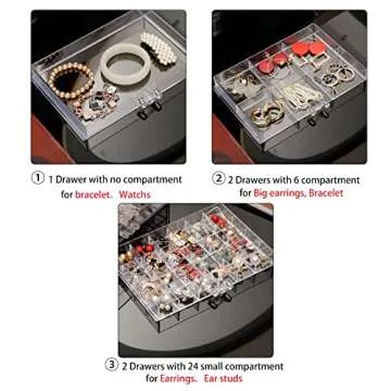 The large capacity and organized compartments are perfect for maintaining a clutter-free environment, ensuring that all your items are visible and easy to access. Whether it's for earrings, bracelets, or larger accessories, this jewelry box allows for effortless organization, making it fantastic for daily use or special occasions.
