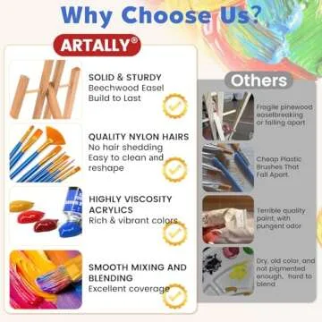 In a sea of painting supplies, the **Acrylic Paint Set for Kids & Adults** stands out due to its thoughtful curation of quality components. Unlike others that only offer paints and brushes, our set provides durable beech wood easels and a larger array of colors—including 24 non-toxic, fade-resistant acrylic options—making it the perfect choice for artists of all ages. Many competitors compromise on brush quality, but our premium brushes ensure durability and performance even after extensive use. Choose our set for a complete, enjoyable, and enriching painting experience.