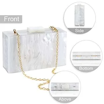 Acrylic Purses and Handbags with Marbling for Women Elegant Banquet Evening Crossbody Handbag Box Clutch (Silver)