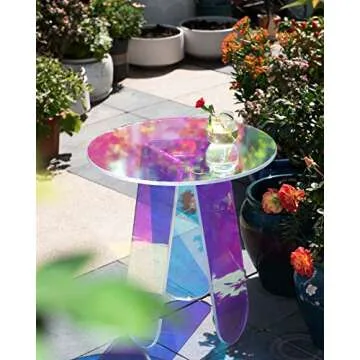 Acrylic Rainbow Color Coffee Table, Iridescent Glass End Table Round Side Table Modern Accent TV Table for Living Bed Room Decoration