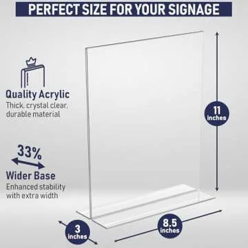 Acrylic Sign Holder 8.5 x 11, T-Shape Tabletop Display Stand, Double-Sided Bottom Load Portrait Frame, Menu and Ad Holder for Restaurants, Promotions, Photos, or Classrooms, Durable Design (3 Pack)
