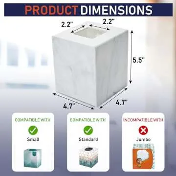 Introducing the Stylish Acrylic Tissue Box Holder, a perfect blend of functionality and modern elegance. Available in five stunning colors: clear, iridescent, marble, black glitter, and clear glitter, this tissue box cover effortlessly elevates your décor. Measuring 4.7" L x 4.7" W x 5.5" H, it is designed to fit seamlessly in every corner of your home, office, kitchen, bathroom, or RV. This square acrylic holder not only provides a stylish touch to your space but also ensures that tissues...