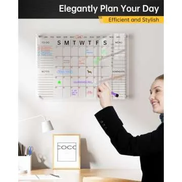 Acrylic Wall Calendar with Dry Erase Surface | 28x20" Clear Monthly Planning Board | includes 8 Color Markers, Eraser, Multi-Color Standoff Screws, and Installation Kit | Perfect for Home & Office