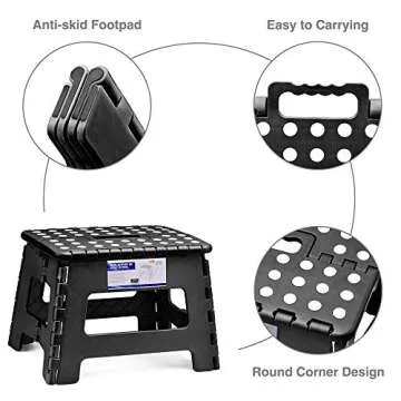 Equipped with a unique carrying handle, these stools can be effortlessly folded and unfolded with just one hand, making them an ideal choice for anyone on the go. The handle appears conveniently when the stool is folded flat, allowing you to carry it from room to room with ease. They’re also designed to save over 90% of your closet space when not in use; simply slide them into tight spots or tuck them under furniture until needed.