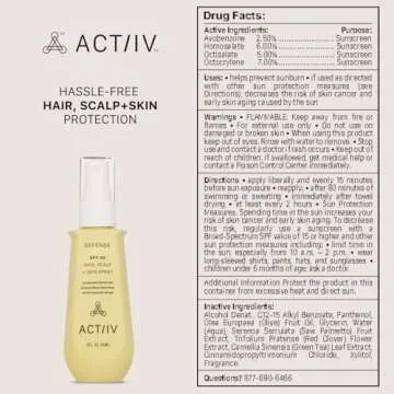 Show more The ACTIIV SPF 30 Hair + Scalp Defense Spray is your essential partner for glorious hair and healthy scalp under the sun. Designed with a lightweight and non-greasy formula, this innovative spray delivers optimal protection from harmful UV damage, ensuring your locks and scalp maintain their vibrancy and health. Its water-resistant properties make it perfect for outdoor activities, allowing you to enjoy the beach or a sunny hike without worrying about UV rays. Best of all, it’s vegan and suitable for all hair types, making it a versatile beauty staple.