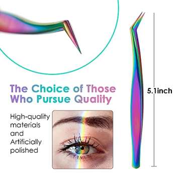 ACTROL Eyelash Extension Tweezers Set 3 PCS for Volume lashes Stainless Steel professional Precision Tweezers Straight and Curved Tip Tweezers (1pcs, Rainbow)