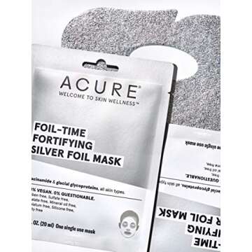 When comparing the Acure Foil-Time Fortifying Silver Mask to other typical sheet masks on the market, its unique silver foil technology stands out by providing an unprecedented heating effect designed to enhance serum absorption. Many competitors utilize traditional sheet materials that may lack the ability to trap heat effectively, which can hinder ingredient efficacy. The thoughtful formulation free from harsh chemicals also positions Acure above brands that compromise on their product integrity for price.