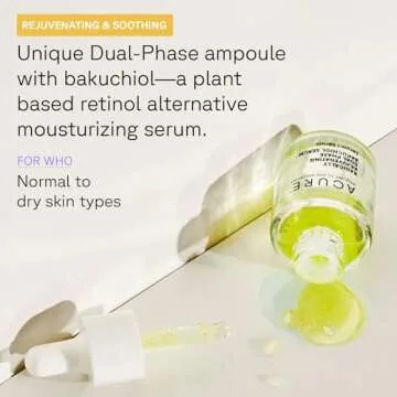 Acure Radically Rejuvenating Dual Phase Bakuchiol Serum - Anti-Aging & Soothing Skin Support - All Natural Made with Eggplant, Turmeric & Bakuchiol - Vegan Skin Care, Hydrates & Defends - 0.67 oz