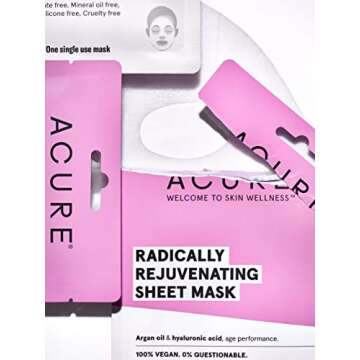 Acure Radically Rejuvenating Sheet Mask, 100% Vegan, Provides Anti-Aging Support, Argan Oil & Hyaluronic Acid - Hydrates & Nourishes, 1 Count, 0.67 Fl Oz